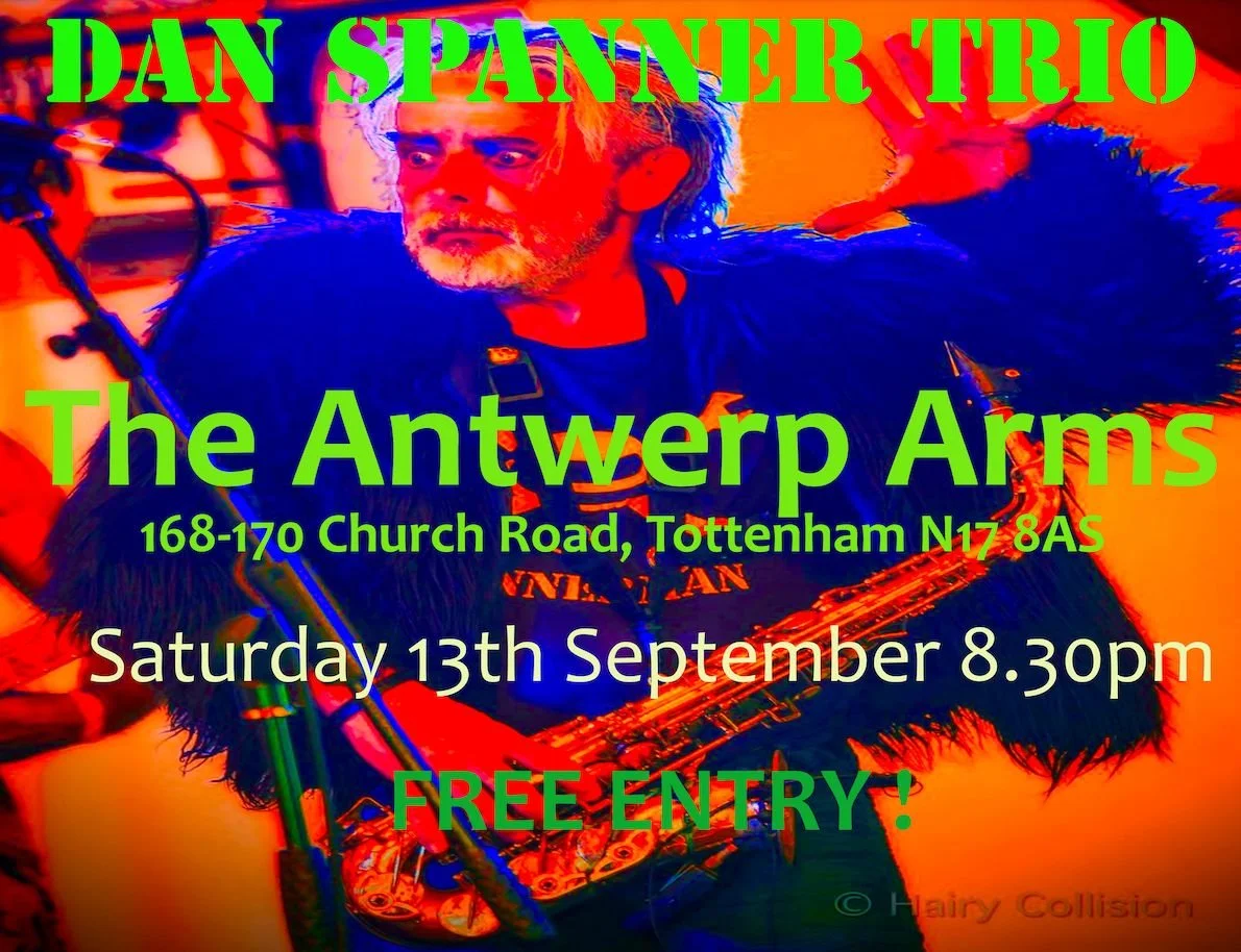 "Dan Spanner. Tim Burton got it all from him!!" “Frontman, Dan Spanner, reminiscent of Iggy Pop, Ian Dury...” "Hendrix vibe sax with nutty psychedelic poetry and lyrics"