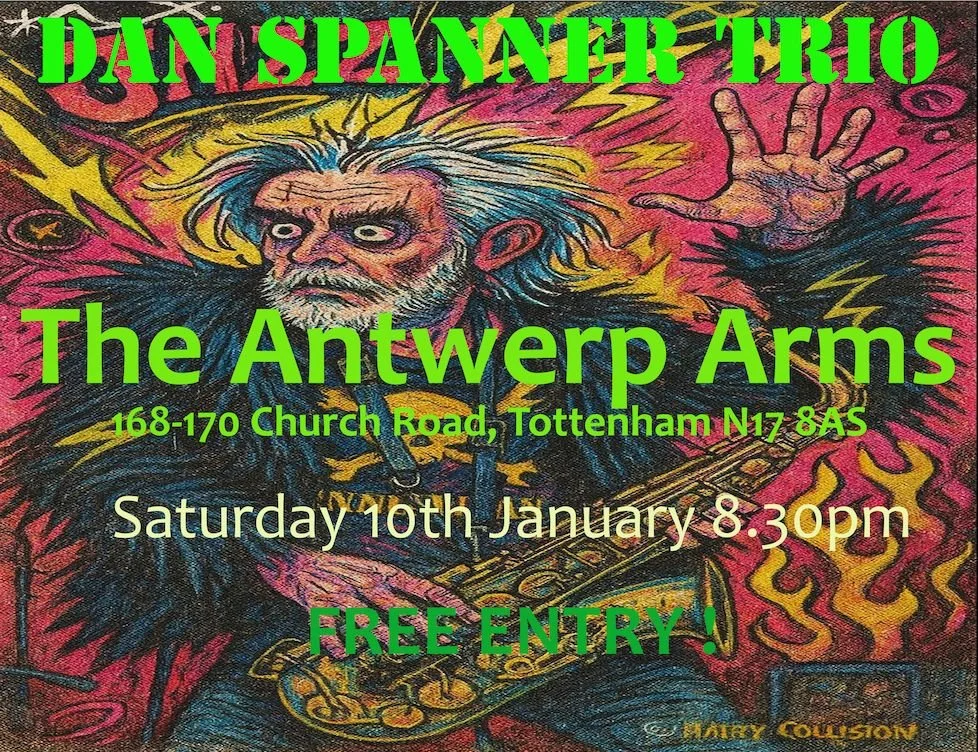 "Dan Spanner. Tim Burton got it all from him!!" “Frontman, Dan Spanner, reminiscent of Iggy Pop, Ian Dury...” "Hendrix vibe sax with nutty psychedelic poetry and lyrics"
