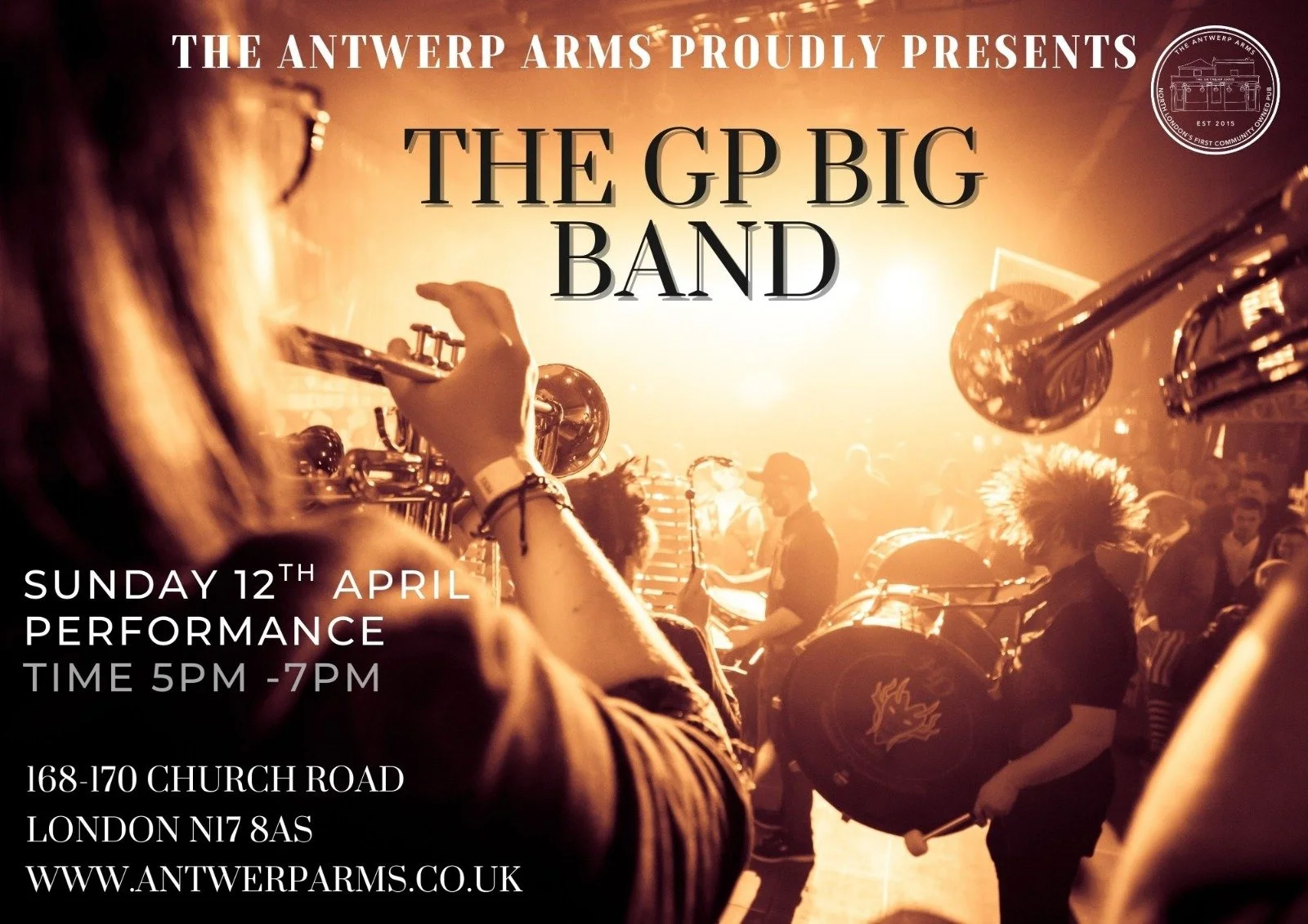 A massive band 18 piece band of classy players from across the capital, plus singer Kate Daniels. More saxes, trumpets, trombones and a hot rhythm section than players in the Tottenham squad!