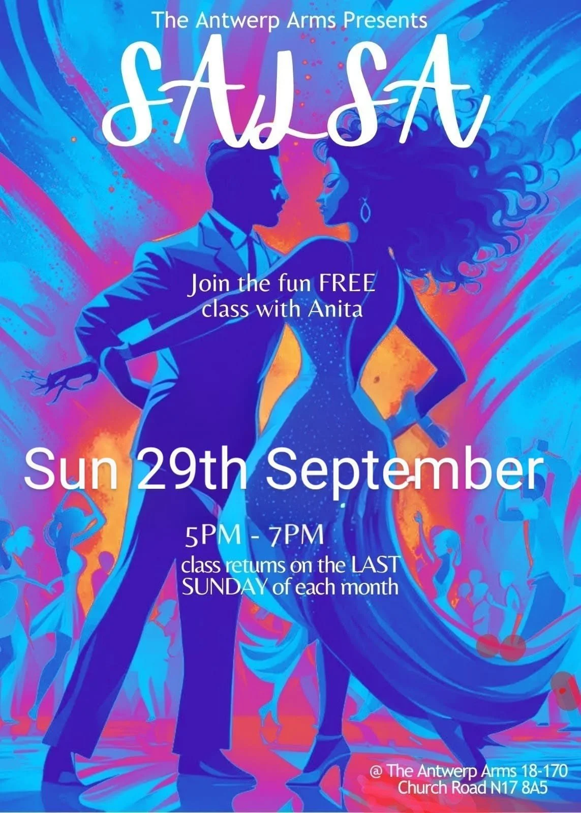 From Anita: “My beginner's salsa class is designed to introduce participants to the energetic world of salsa dancing. The class focuses on basic steps, footwork, rhythm, and partner connection. In a lively and enjoyable atmosphere where you can learn the fundamentals of salsa while having a great time. No prior dance experience is necessary, making it an ideal starting point for anyone looking to explore salsa in a friendly environment. Get ready to move your hips, enjoy catchy Latin beats, and discover the joy of salsa dancing!”